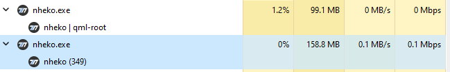 Once Nheko is 100% Qml we should also see lower memory usage again, here is a screenshot from a Nheko instance with over 100 rooms, that's been running for a few days of active use on Windows: