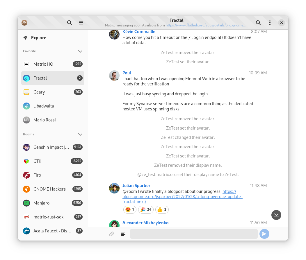 Hello TWIM! Last week we released Synapse 1.51. This is a great release which includes lots of performance work around sending aggregations down /sync. It also makes Spaces much more reliable: we tracked down a bug with caching which could cause some sub-spaces to randomly appear empty when queried over federation. We also removed the 50 result limit when listing the contents of a Space.