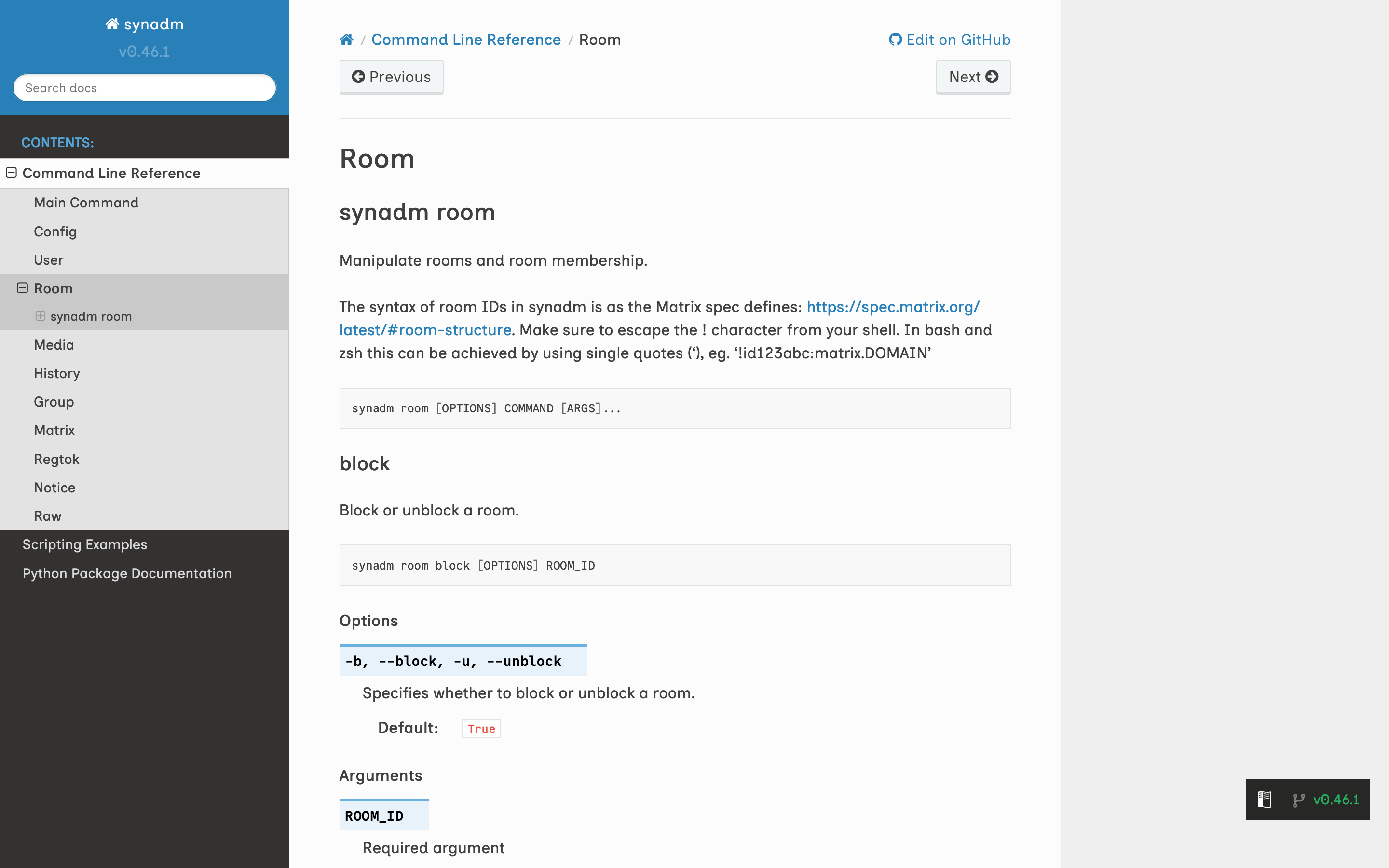 1. The most obvious theme change: You can see the new docs theme on https://synadm.readthedocs.io/en/latest/ right now (compared to https://synadm.readthedocs.io/en/v0.46.1/)
